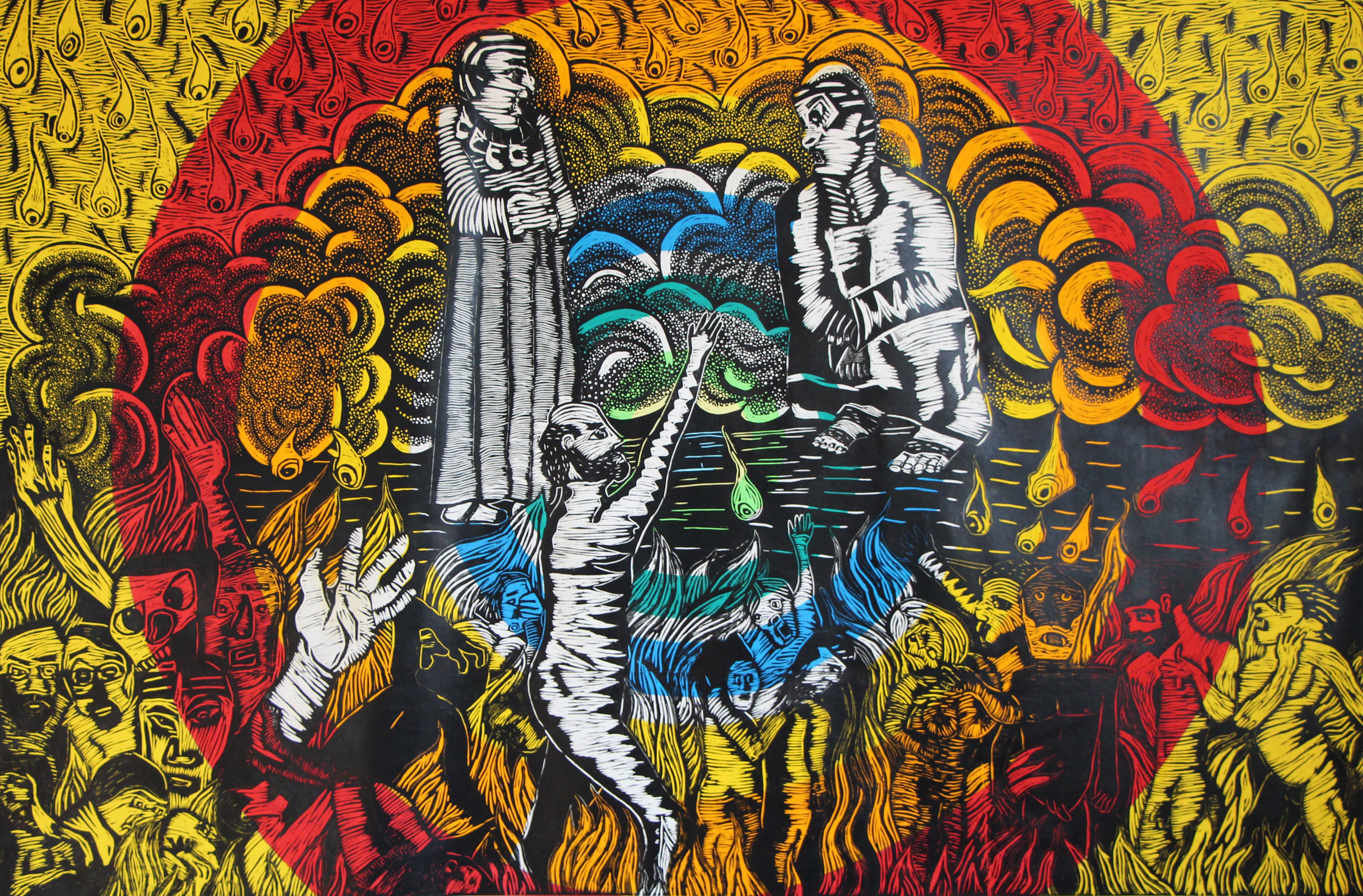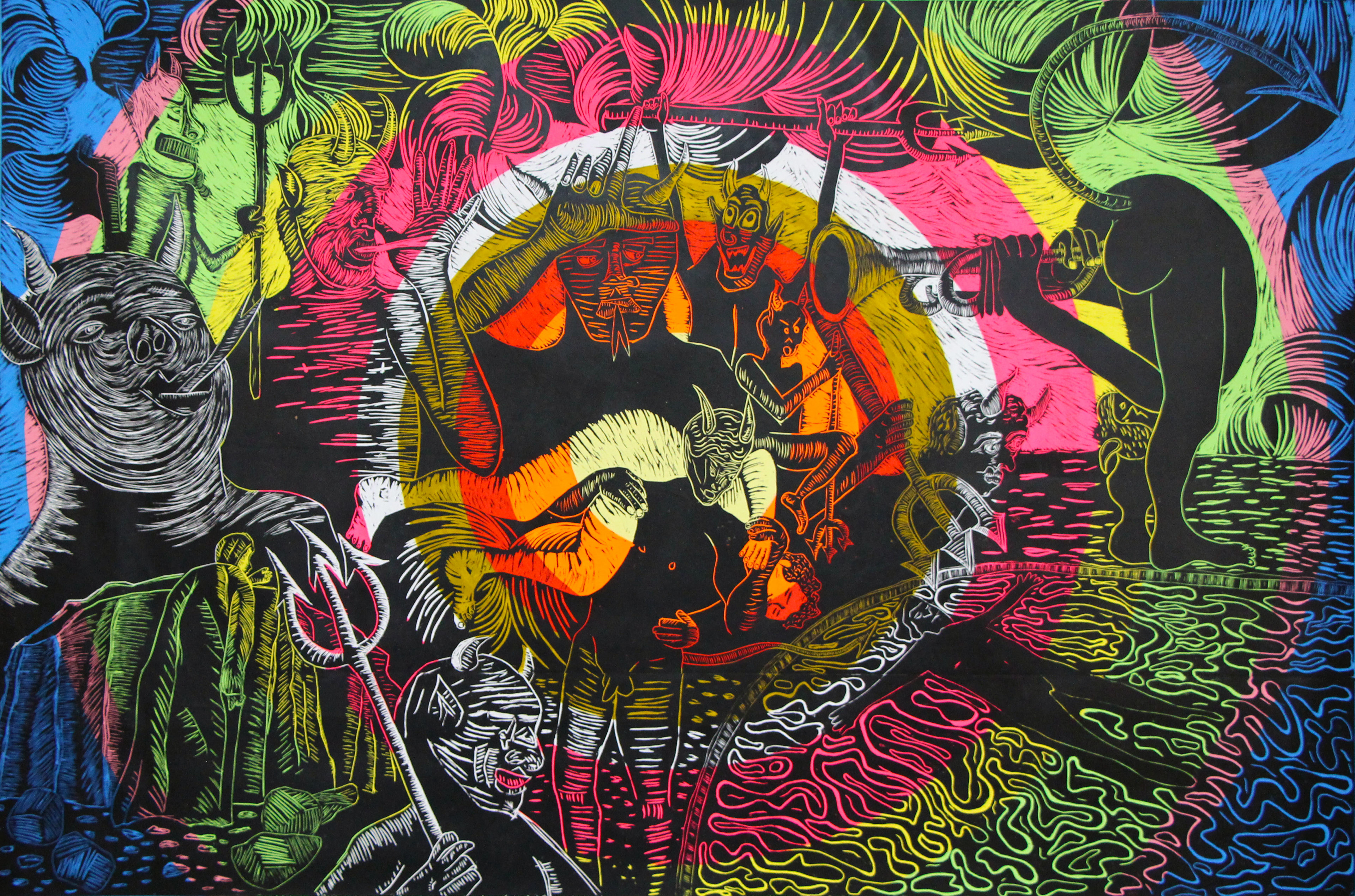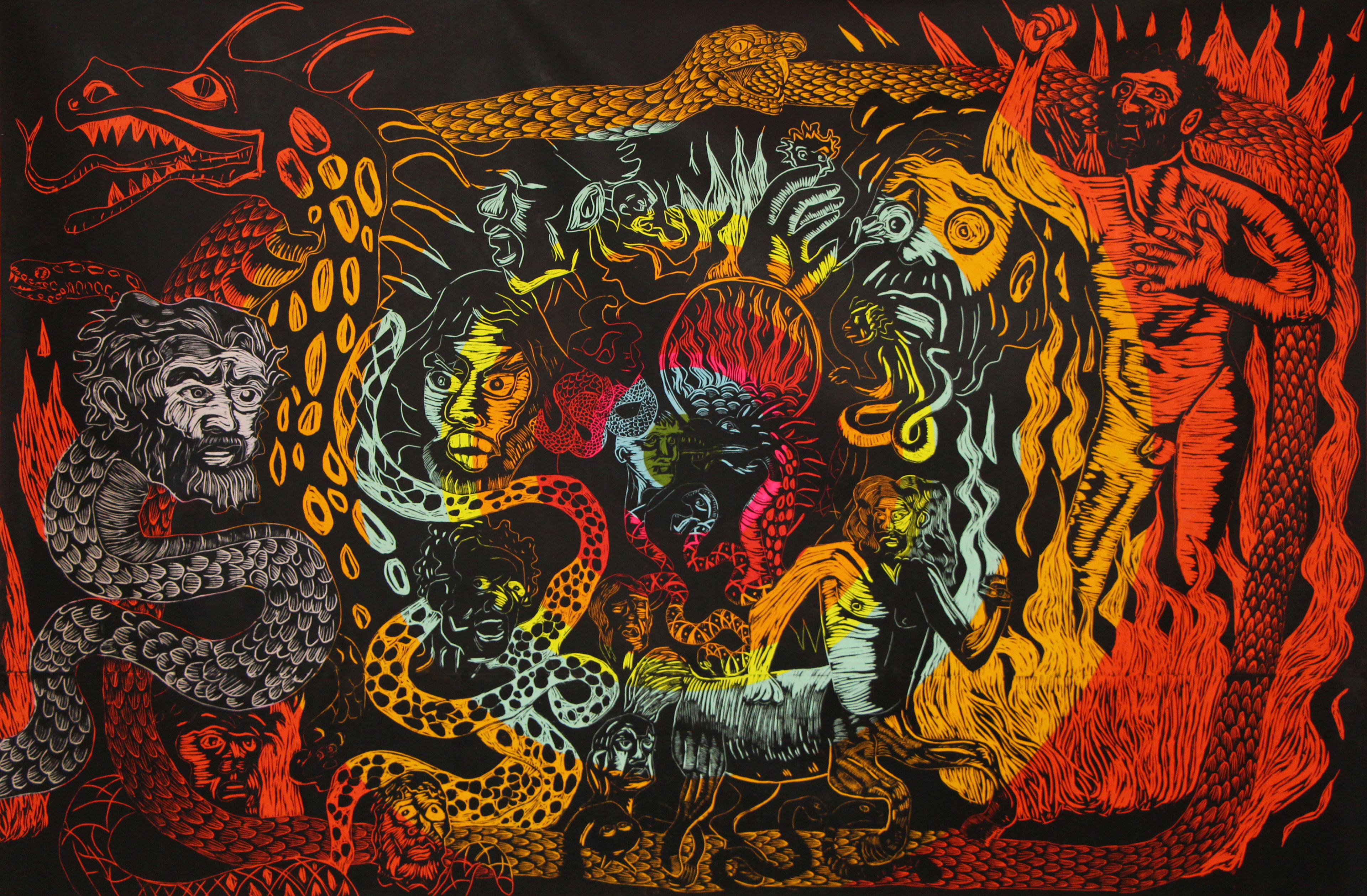 Canto XIV (2023 Grabado en relieve y acrílico sobre tela 244 x 183cm, Unica pieza)