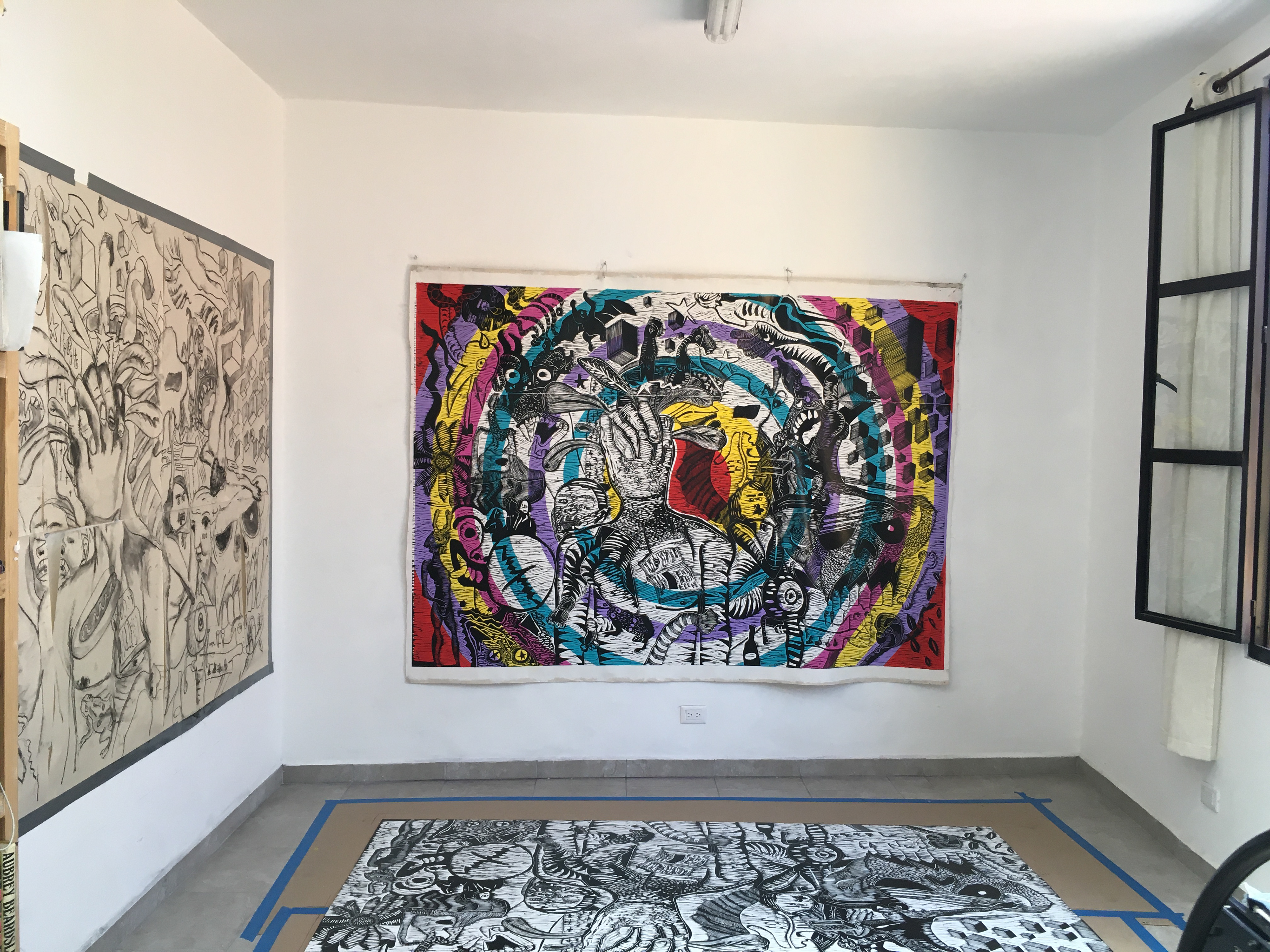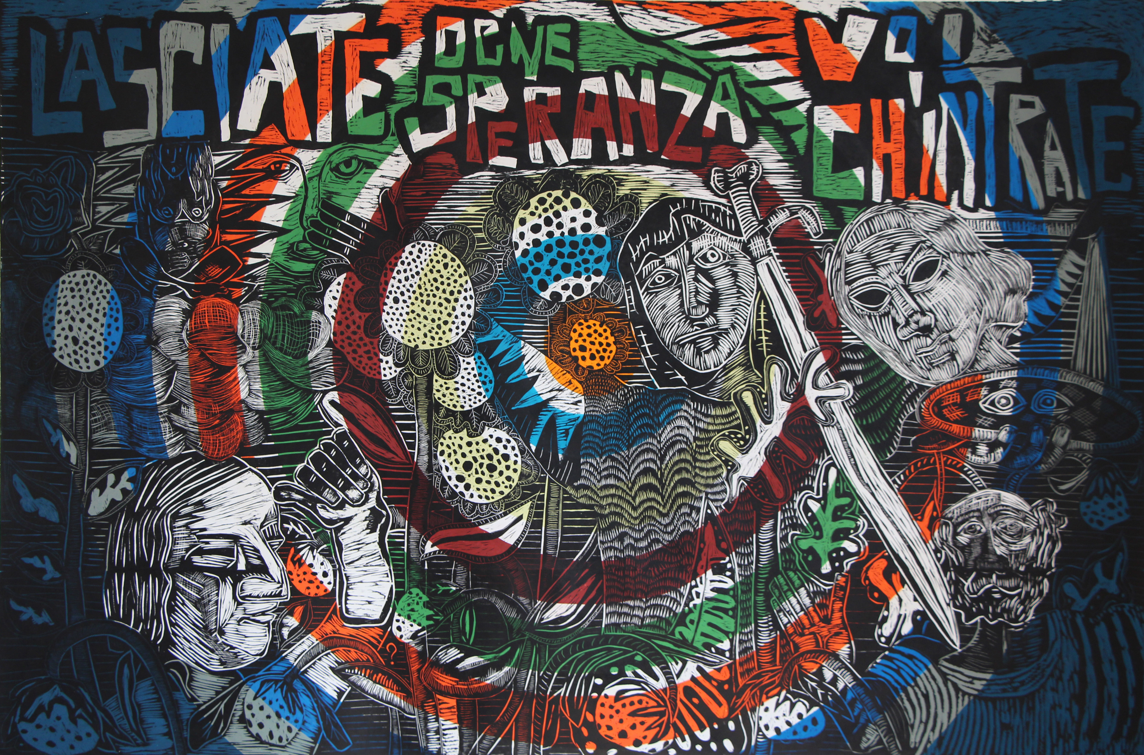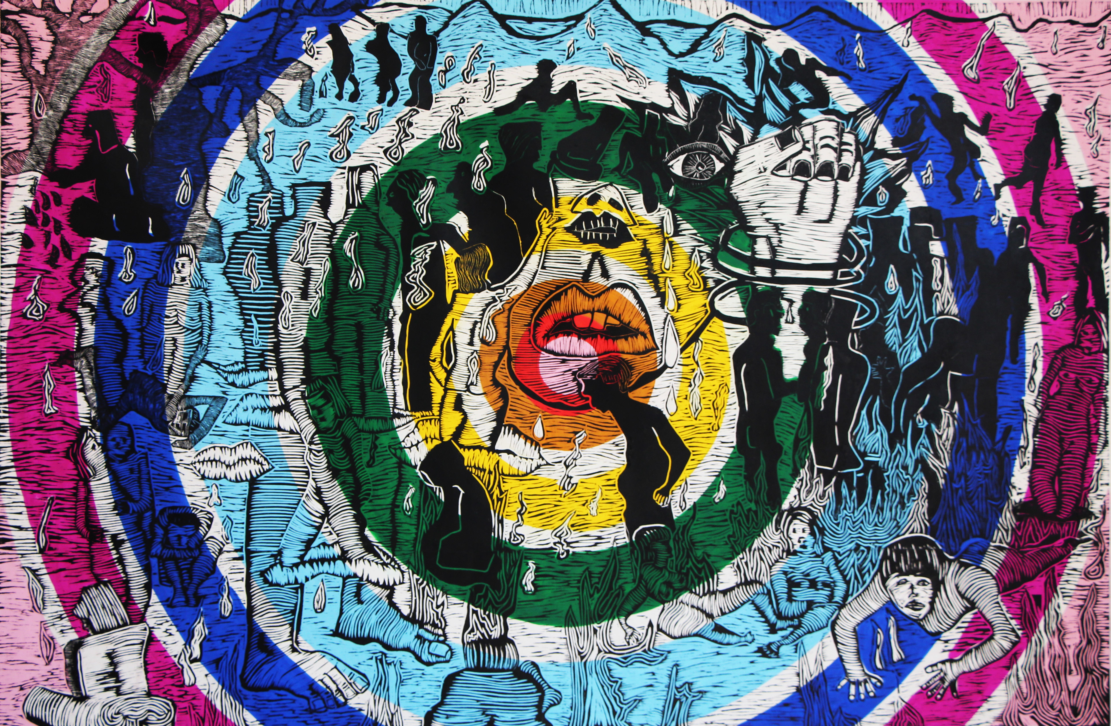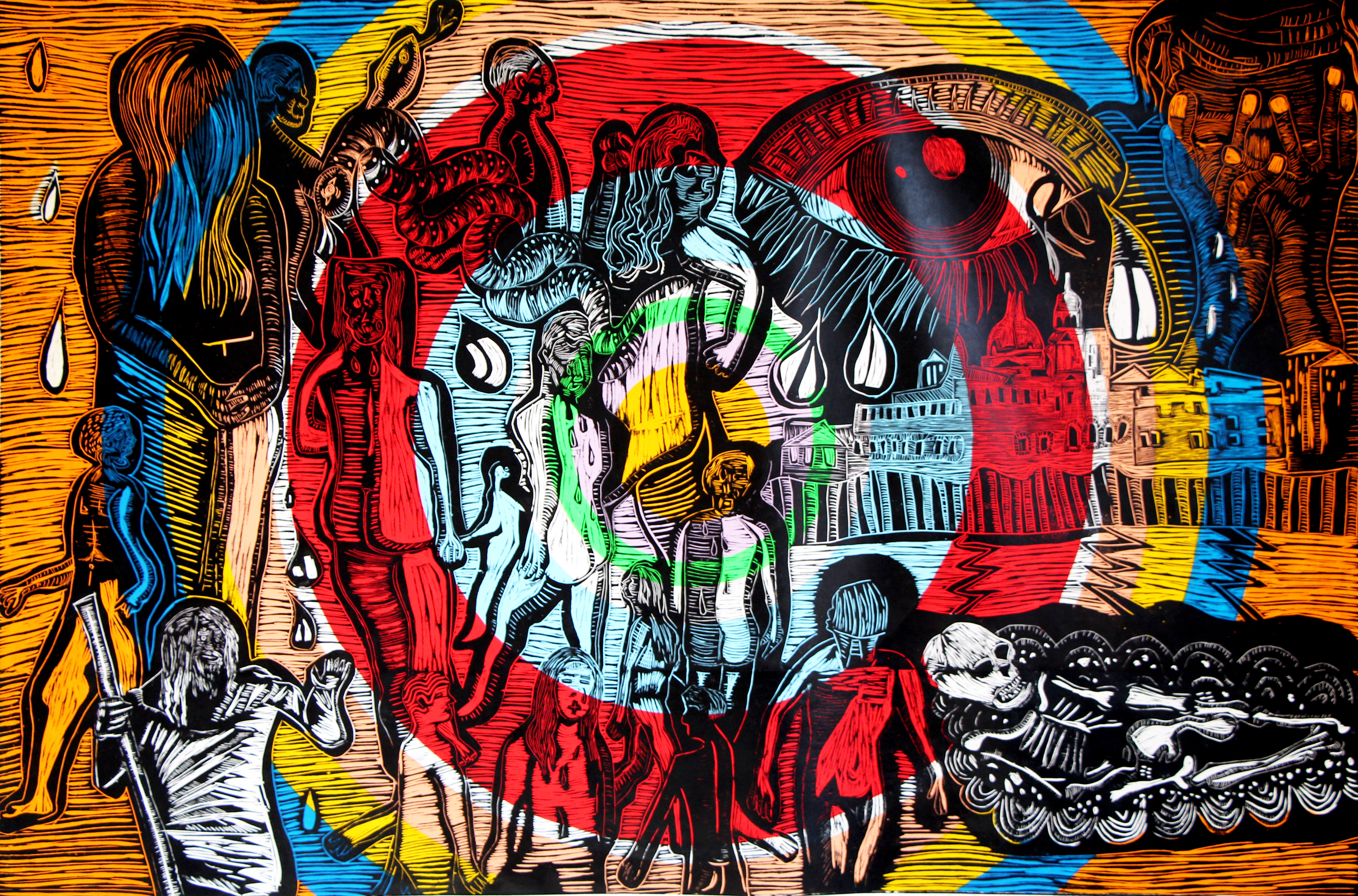 Canto I (2021 Grabado en relieve y acrílico sobre tela 244 x 183cm, Unica pieza)